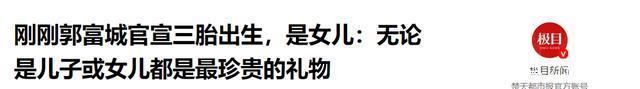 主要信源 极目新闻——刚刚郭富城官宣三胎出生,是女儿:无论是儿子或女儿都是最珍贵的礼物